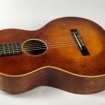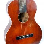 They are a ladder braced ‘O’ sized guitar (13 1/2″ wide) and originally were given away with a mail order course of how to play slide guitar ‘Hawaiian’ style. However it was realized by many of the early blues masters such as Blind Willie Johnson that birch guitars, with their raw sound, were great for playing the blues. At the time these guitars could probably have been picked up quite cheaply from some of the many students of FHCM who gave up playing and never finished the course!