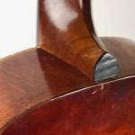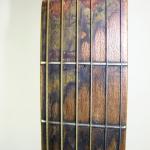 The body measured 13 1/2″ across at the lower bout. Scale length is ~ 25″ (short scale). The fingerboard measures 1 13/16″ across at the nut and string spacing is 2 1/8″ at the saddle.