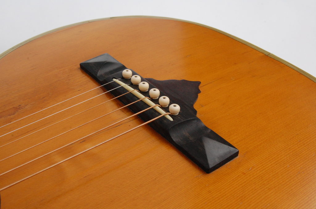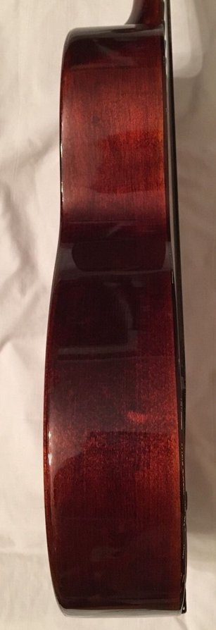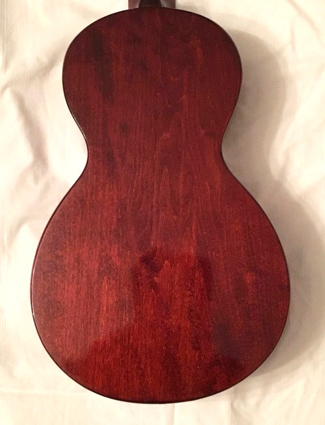 They took the top off, removed the neck & fingerboard, glued all the cracks, replaced a couple of missing braces, put in a truss rod, replaced the bridge with a “pyramid” style bridge, refretted & refinished it (I know – I wouldn’t have if it was a Martin) since I wanted it to be something I could play without it being too “precious”. It seems that Imperial was ahead of the curve in making guitars that could accommodate steel strings and in using “tang” frets when Martin was still using “bar” frets