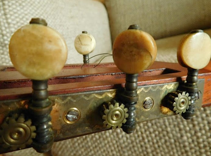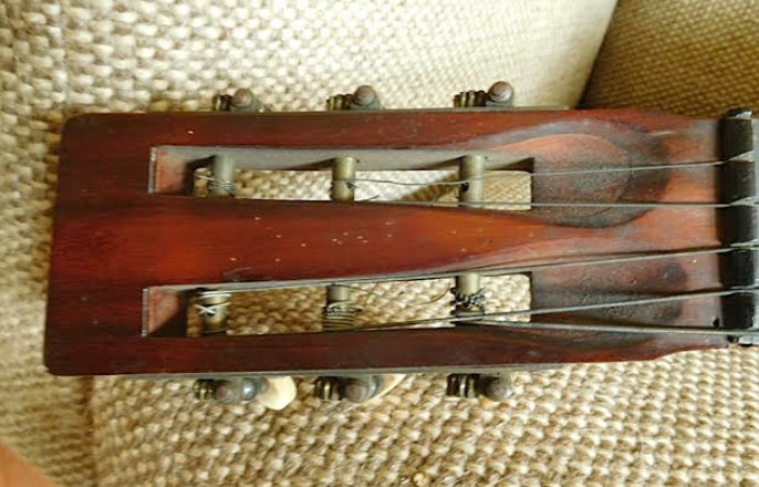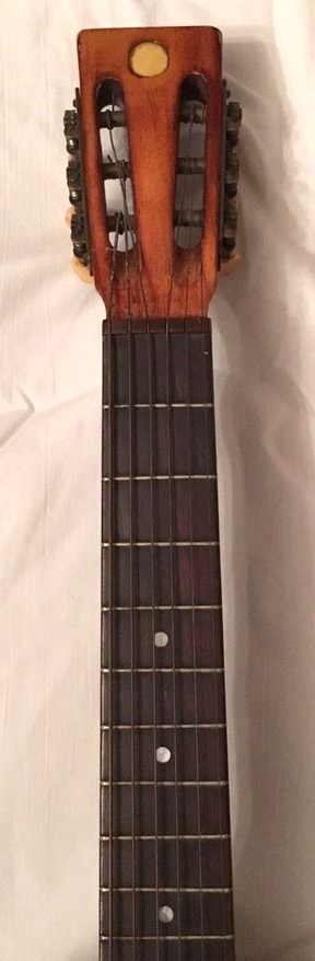 Hello Charles–I was fortunate to snag an old Imperial Geiger guitar at a tag sale recently and was happy to stumble across your blog. My guitar appears to be just like the Geiger guitar Carolee shared with you with two exceptions: mine measures 42 1/2″ long and has a wooden knob for protection on the end by the metal work. I’d be curious to hear your take on mine. I’ve got some pics that I’ll try to send to your email address. Thanks john