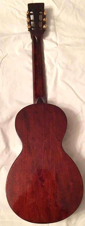 I just acquired Imperial #5591. It appears to be birch sides and back. It had a neck reset and it plays and sounds wonderful. I’m very impressed with the quality of these guitars. This is one of my favorite parlors. It has its original Geiger bridge. My bridge doesn’t have the Patent Applied For stamp so maybe by the time mine was made they had received the Patent and no longer stamped them.