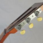 The holes where the tuner barrels went into the mahogany were oversized and the timber was soft.  I filled them with an epoxy putty and imbedded ¼ “ tuner bushings (the same bushings used on solid headstock guitars). These provided a firm seat for the barrels and thus helped eliminate any problems of the guitar going out of tune. Some of the bushings needed to be shortened.